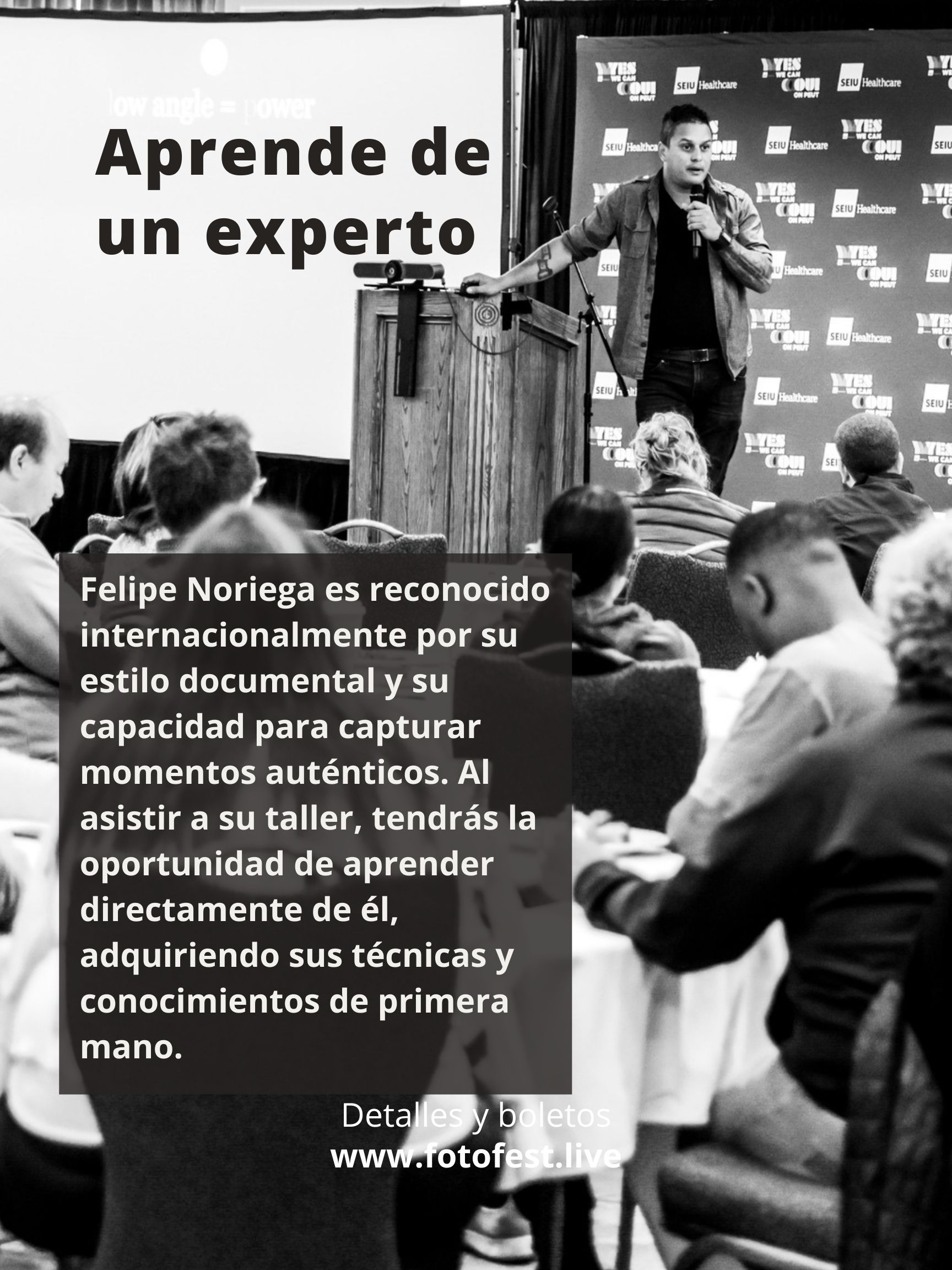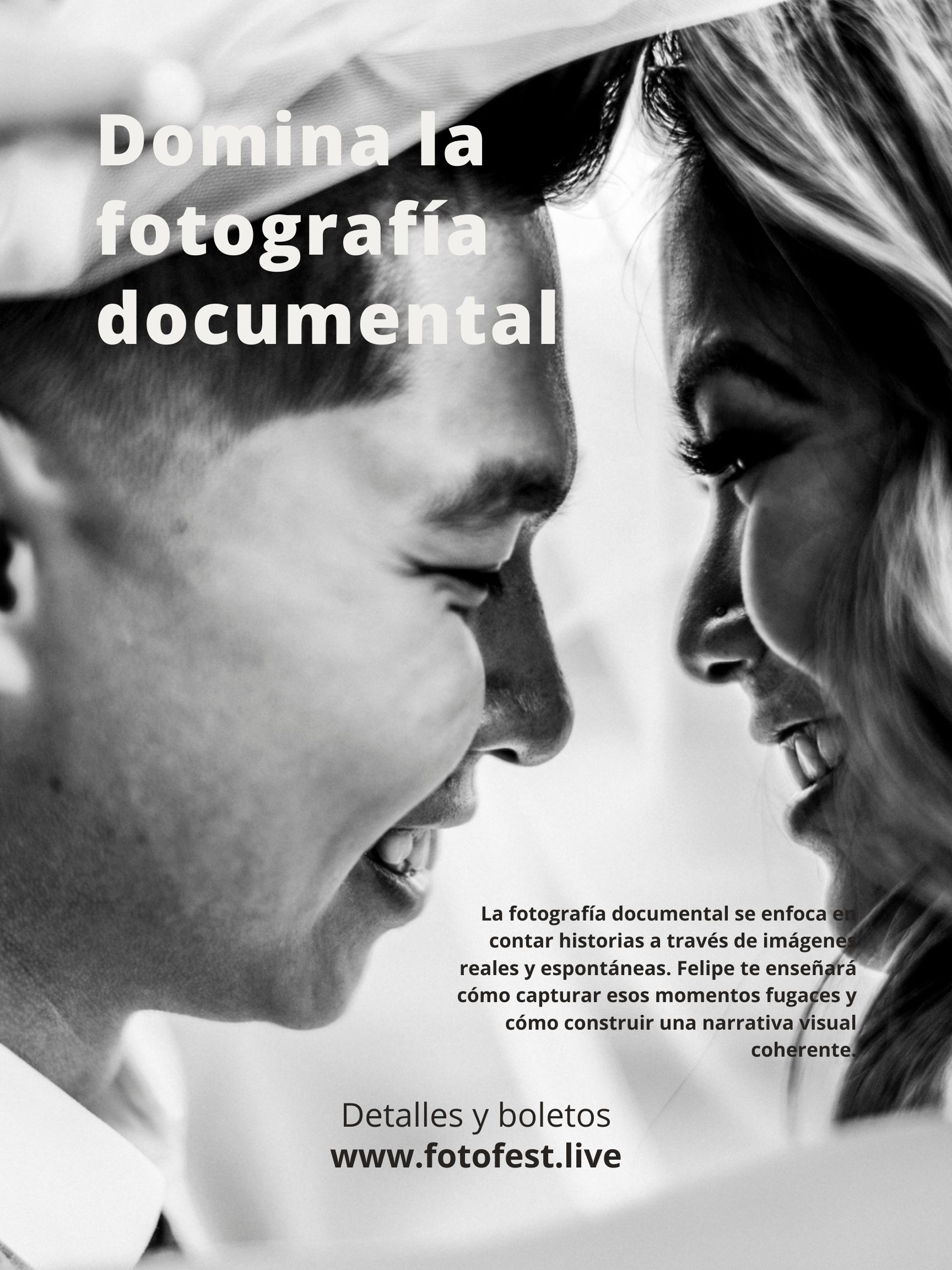 Aprende a capturar los momentos más auténticos y conmovedores con Felipe Noriega, uno de los fotógrafos de bodas documentales más reconocidos a nivel internacional. En este taller intensivo, descubrirás los secretos para contar historias a través de tus imágenes, perfeccionar tu técnica y desarrollar un estilo único. Desde la composición y la iluminación hasta la edición y la postproducción, Felipe te guiará paso a paso para que puedas llevar tu fotografía documental al siguiente nivel. ¡No te pierdas esta oportunidad de aprender de un maestro y de conectar con otros fotógrafos apasionados!